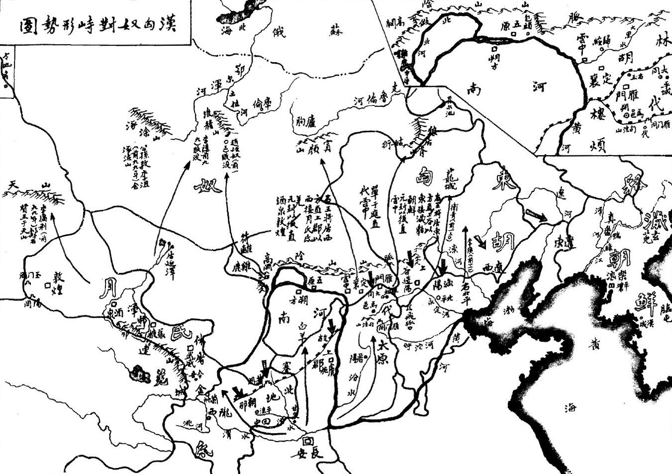 汉与匈奴边界辽阔,匈奴飘忽无定居,乘我秋冬农稼毕收,彼亦马肥弓劲,“秋高则马壮,风劲则弓燥。”入塞侵掠,“攻者一点,防者千里。”中国疲于奔命。就匈奴全国壮丁言,不出三十万。“史纪称匈奴:“控弦之士三十余万。”又云:“自左、右贤王以下至当户,大者万余骑,小者数千,凡二十四长,立号曰‘万骑’。”又曰:“士力能弯弓,尽为甲骑。”则匈奴骑士至多不越三十万也。壮丁尽为甲骑不出三十万,以五口一壮丁计之,匈奴全部人口不出百五十万,故中行说谓“匈奴人众不能当汉一郡”。”其社会组织并不如中国之强韧,则可以寻其主力一击而破。此所谓一劳永逸,较之消极的防御,为利多矣。大抵中国史上对外问题,莫不然也。
