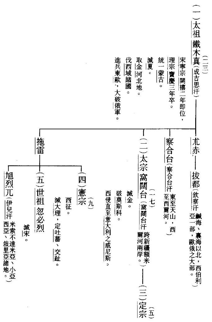 自成吉思汗即位,至忽必烈灭宋,凡历五世,七十四年。