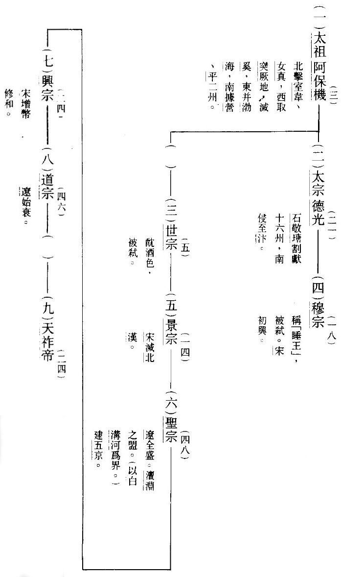 辽凡九主,二百十九年。“辽亡后,建西辽国,复延八十八年。然西辽立国,亦多仗汉人。”