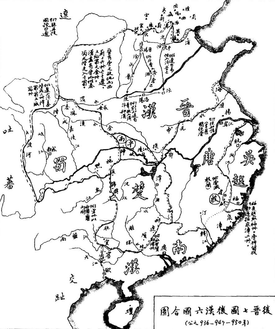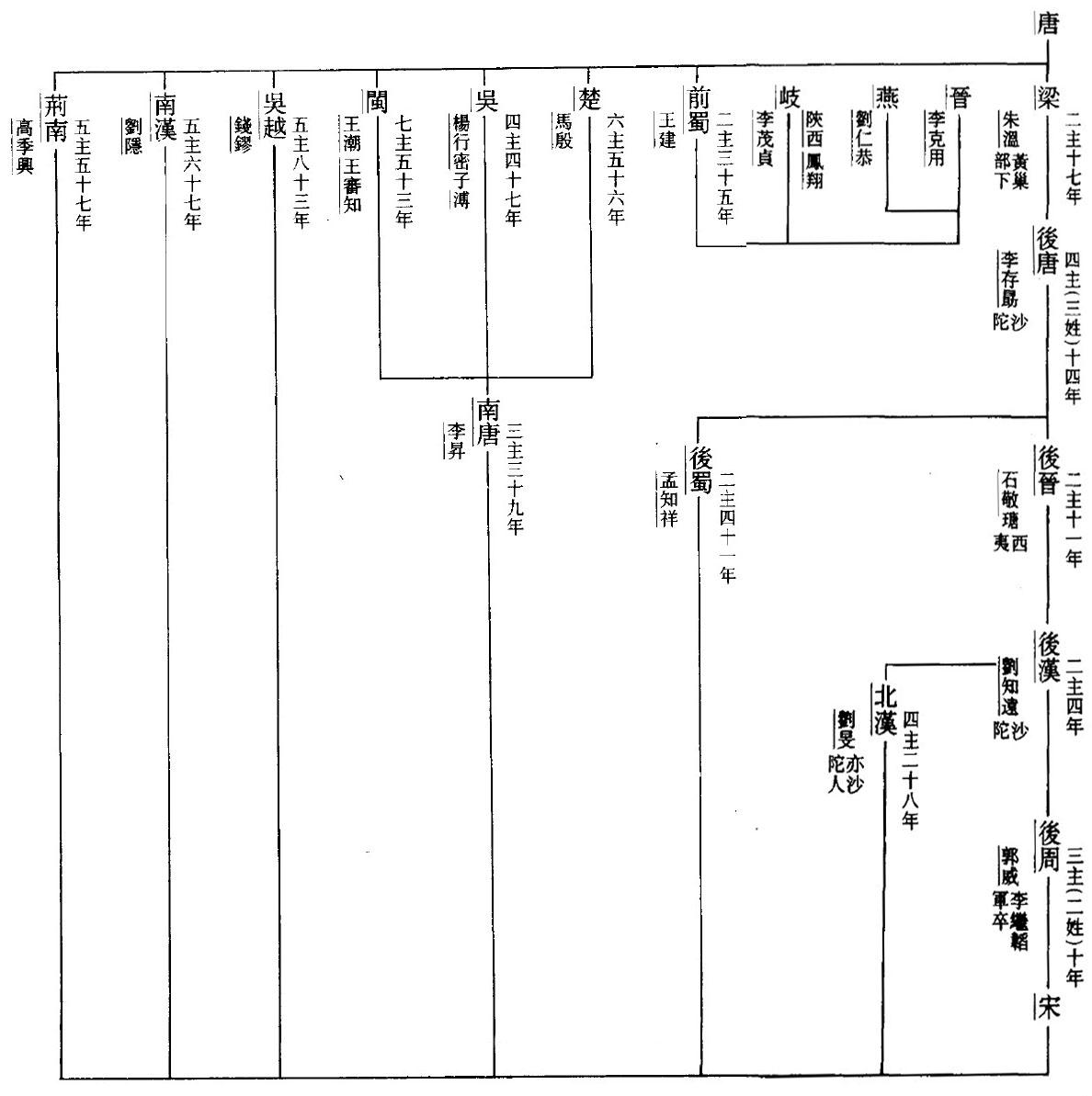 经此十几年的大骚乱,唐代三百年的统一政府,终于倾覆,世袭的节镇,遍及东南,而有所谓五代十国。